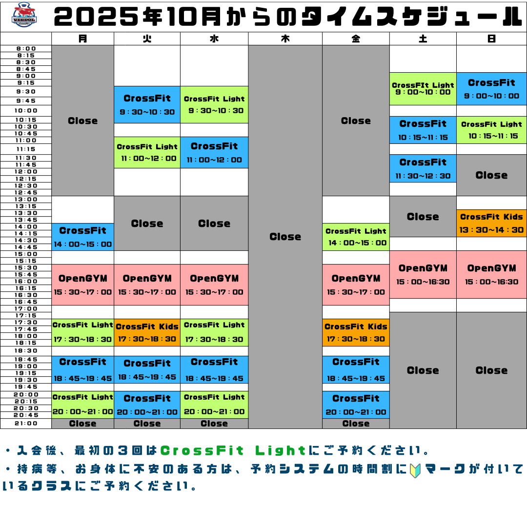 10月からは土曜日の「Yogaクラス」が「CrossFit Lightクラス」へ変更となります。クラス予約時はお時間をご確認の上ご予約をお願い致します。10