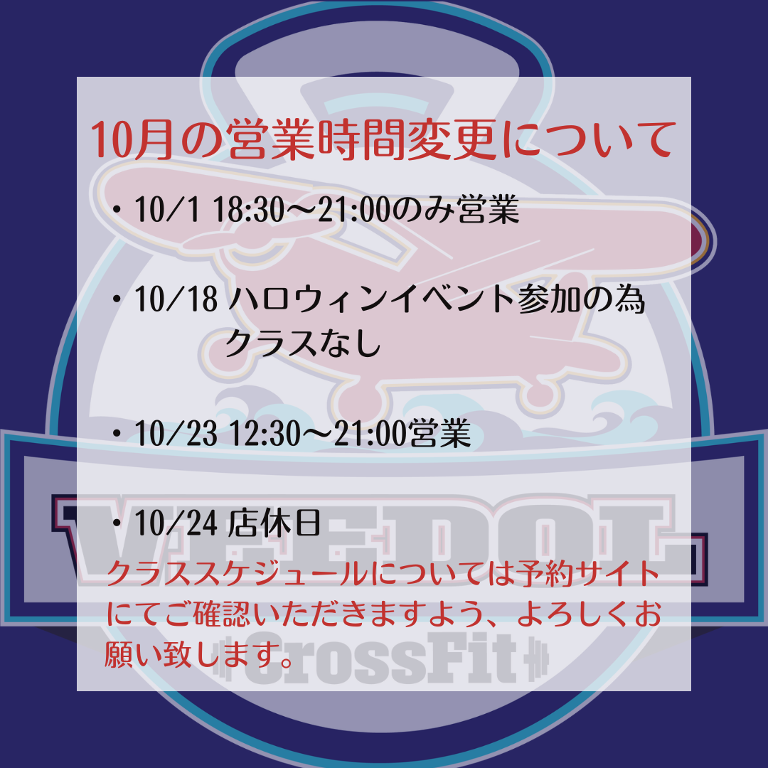 10月からのクラススケジュールと営業時間の変更日のお知らせです🎑